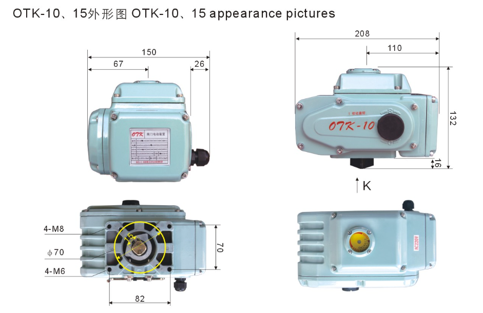 6.防水性強、安裝方便:OTK系列電動執(zhí)行機構(gòu)的防水性產(chǎn)IP67;一個從未接觸過電動執(zhí)行器的人,只要學上二分鐘就會安裝。
